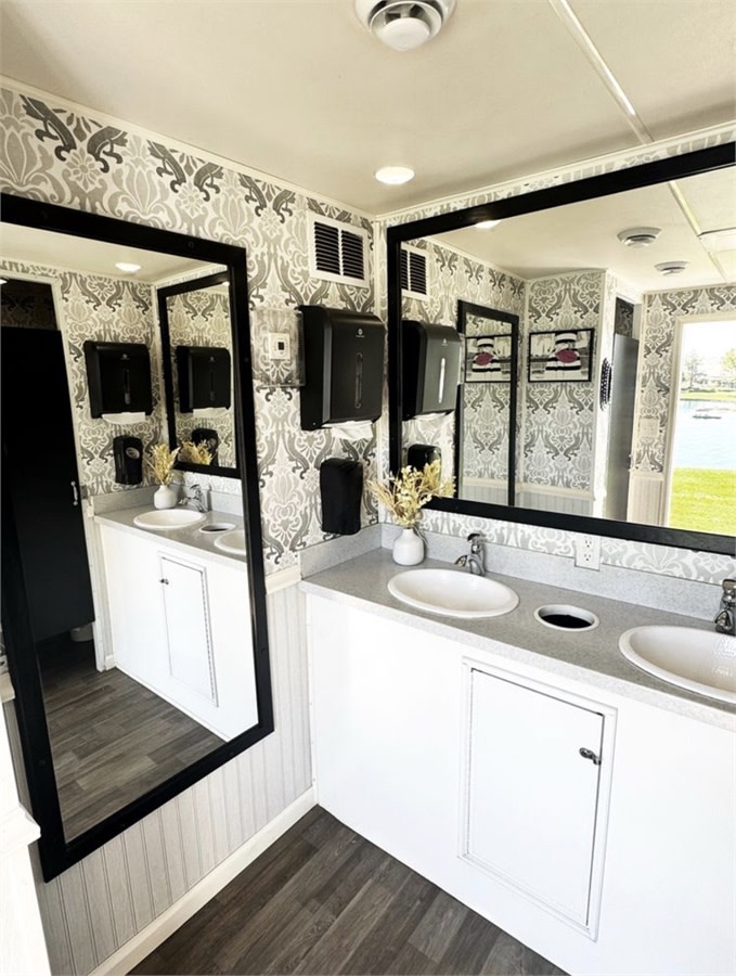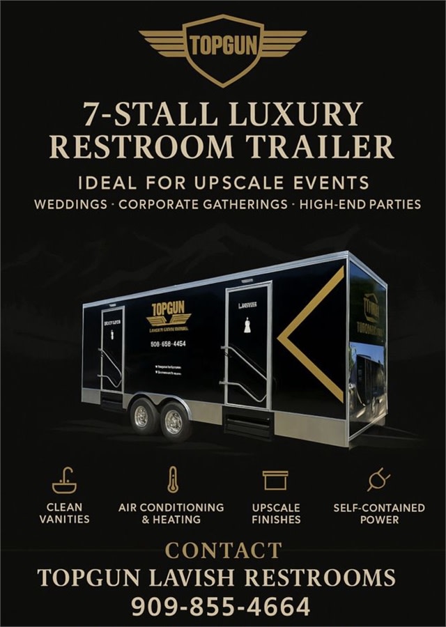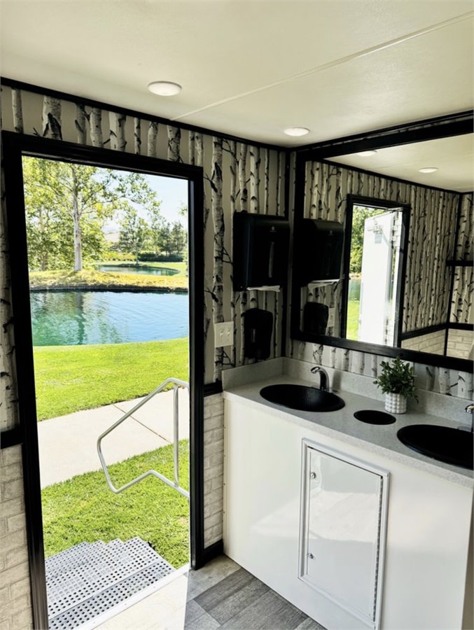 Book Luxury Restrooms 7 Stall Luxury Restroom in Riverside, Orange County, Los Angeles for upscale events. This luxury VIP restroom delivers comfort, privacy, and reliable service. It eliminates long lines and lifts guest satisfaction. Perfect for weddings, film shoots, corporate events, and festivals.