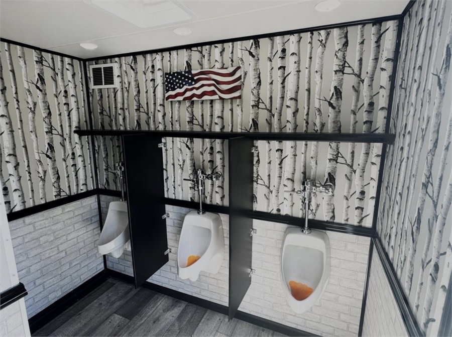 Reliable systems and upscale finishes set this unit apart. Sensor faucets, electric pump, and A/C create a hands-free, comfortable experience. The layout balances capacity with privacy and easy servicing. Reserve the 7 Stall Luxury Restroom today and give your guests a true Luxury VIP Restrooms experience. ✅