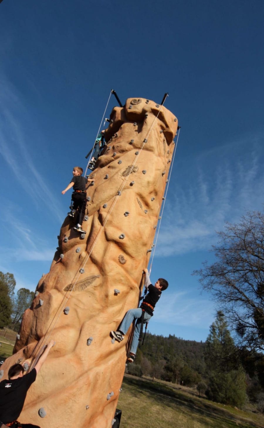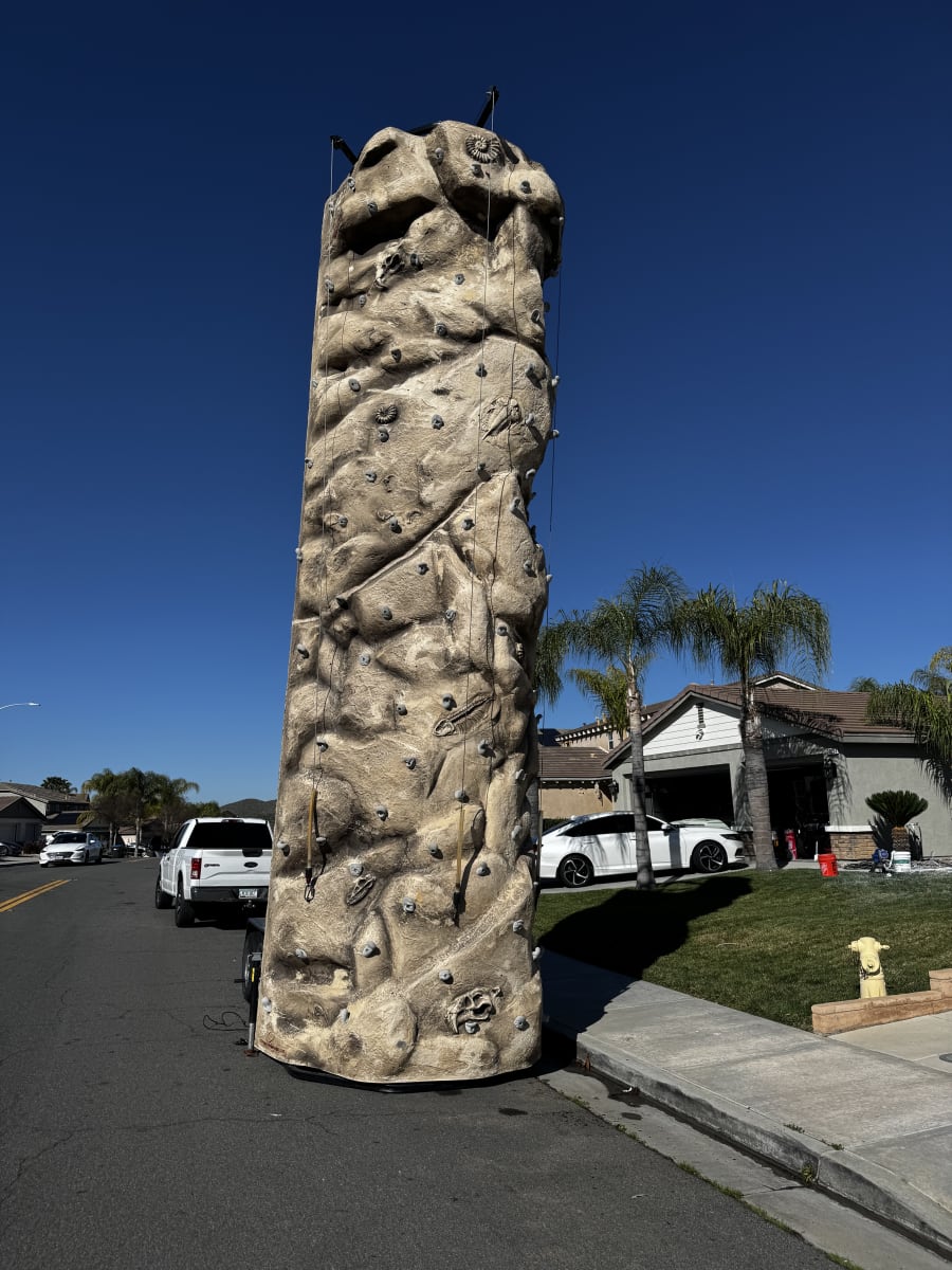Book our Rock wall rental 26’ Rock Wall in Southern California for unforgettable climbs. This 26’ tall, 3-path rack wall delivers a dramatic prehistoric look. Fossils are embedded into the surface for visual impact. Ideal for festivals, corporate events, school fun days, and team-building. Short setup. Professional staffing. Safe, certified equipment.