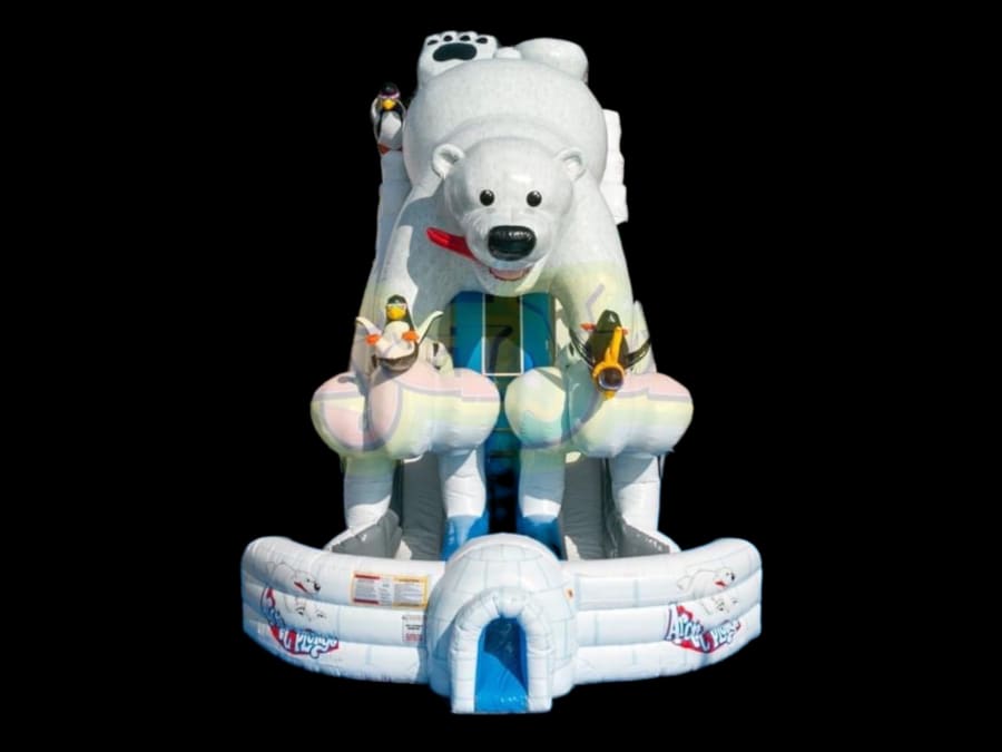 Wow take a look at this ginormous Polar Bear themed duel lane dry slide. This Giant inflatable stands 27 ft in height and is the tallest slide in our inventory. Only the biggest, and best companies will dare add a slide this size to their rental fleet. If you want your next event to be one that no one will forget then you need an event piece like this!