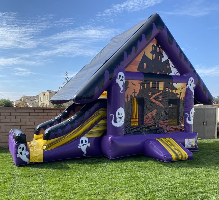 Prepare to be spooked with our Haunted Halloween Combo, the ultimate addition to your Halloween party. This inflatable unit is designed to create a bone-chilling atmosphere and provide endless thrills for all attendees. Step into a world of ghouls and ghosts as you explore the eerie features of this combo. With its hauntingly detailed artwork, creepy crawl-through tunnel, and exhilarating slide, the Haunted Halloween Combo will keep everyone on their toes. It's the perfect centerpiece for a Halloween-themed event, ensuring a memorable and spine-tingling experience for all. Let the scares begin with our frightfully fantastic Haunted Halloween Combo!
