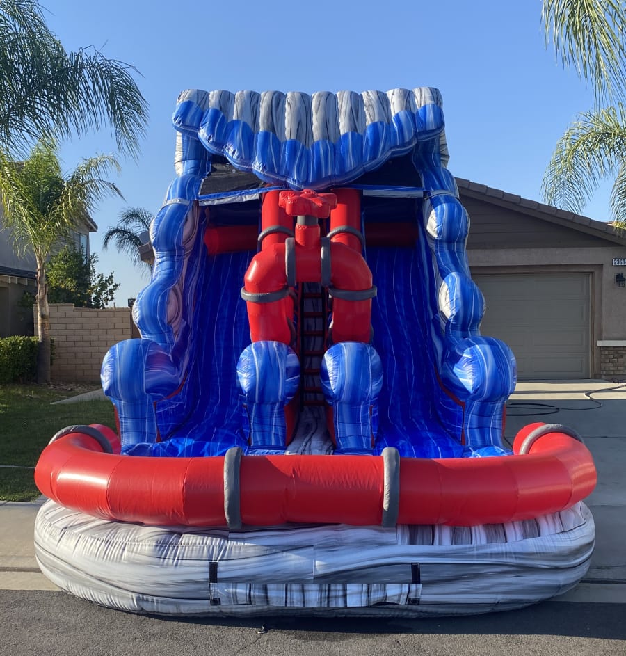 Get ready to take your event to new heights of excitement with our sensational Double Lane 15' Hydro Blaster Waterslide! This incredible inflatable attraction is designed to elevate the fun factor and create an unforgettable experience for all. Standing at an impressive height of 15 feet and spanning a width of 15 feet with a length of 27 feet, this double lane waterslide is a true showstopper. As you and your friends gear up for the ultimate sliding adventure, anticipation builds as you ascend to the top of the slide. With two lanes side by side, you can challenge your friends to a thrilling race to the bottom, each vying for the title of the fastest slider.